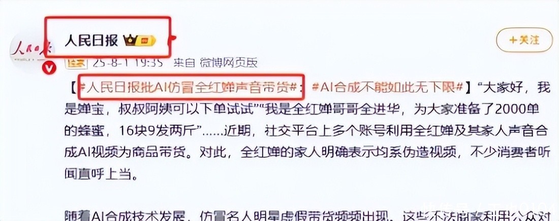 这些账号均使用AI换脸和声音克隆技术,冒充全红婵,推销自家蜂蜜、土鸡蛋等农产品。